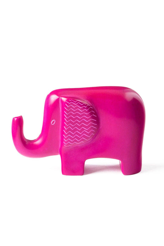 Pink Bashful Zig-Zag Elephant Soapstone Sculptures