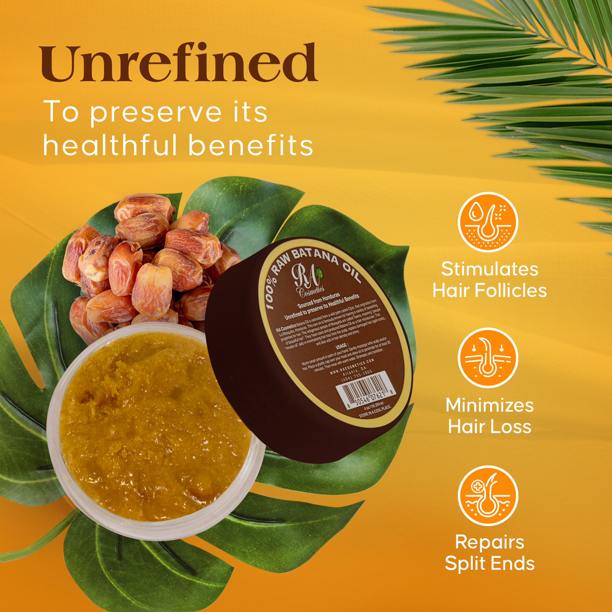Crafted with organic, natural ingredients, our RA 100% Raw Batana Oil delivers chemical-free, additive-free nourishment for your hair. It helps prevent split ends, nourishes roots, and provides all-day protection for healthier, more vibrant hair.
