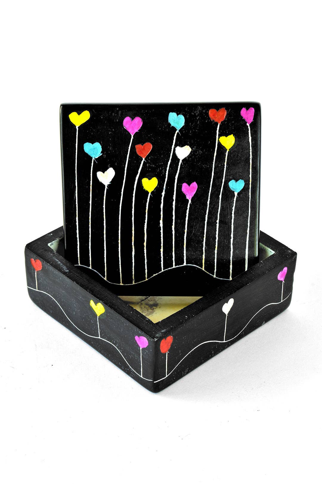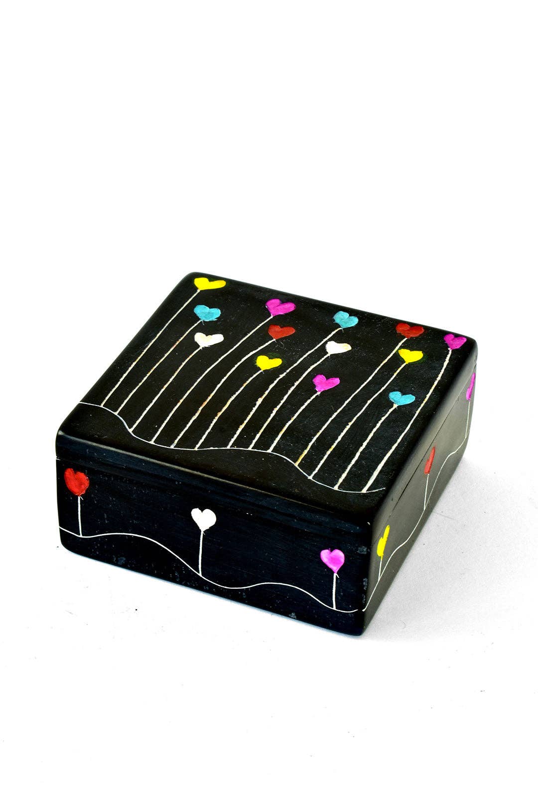 Kenyan artisans handcraft an uplifting decorative keepsake box by carving soft soapstone and adding a fanciful hand painted heart flower design. Matching pieces are also available to bring a joyful touch of global art to the home.