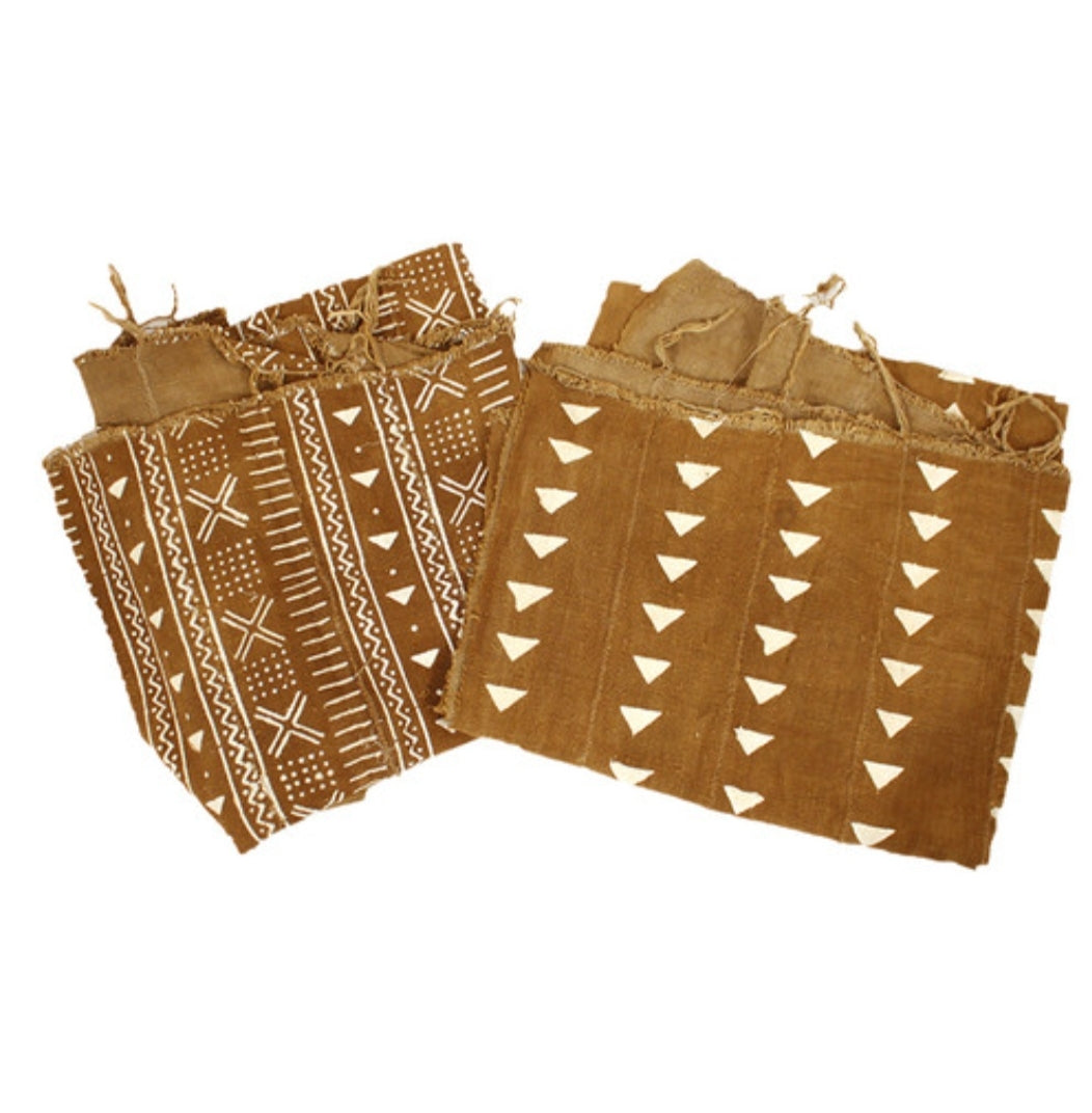 \nThese mudcloth pieces, which are made in Mali are "Lapa" size. Approx. 38" - 45" wide x 63" - 68" long. Sizes may vary as these are hand made. Traditional African mudcloth sheets are handwoven and made one at a time. No two pieces of mud cloth are exactly alike, so the colors shown are available, but the exact patterns vary from one piece to the next. They're great for clothing, home decoration, crafts and other creative pursuits. African artisans hand-dye symbols into these fabrics in order to tell stories of their villages and African proverbs. Mudcloth has a long tradition of being used by West African warriors and hunters to camouflage themselves. Nowadays, people across the globe are wearing them to stand out and celebrate their connection to the African continent. M-F050