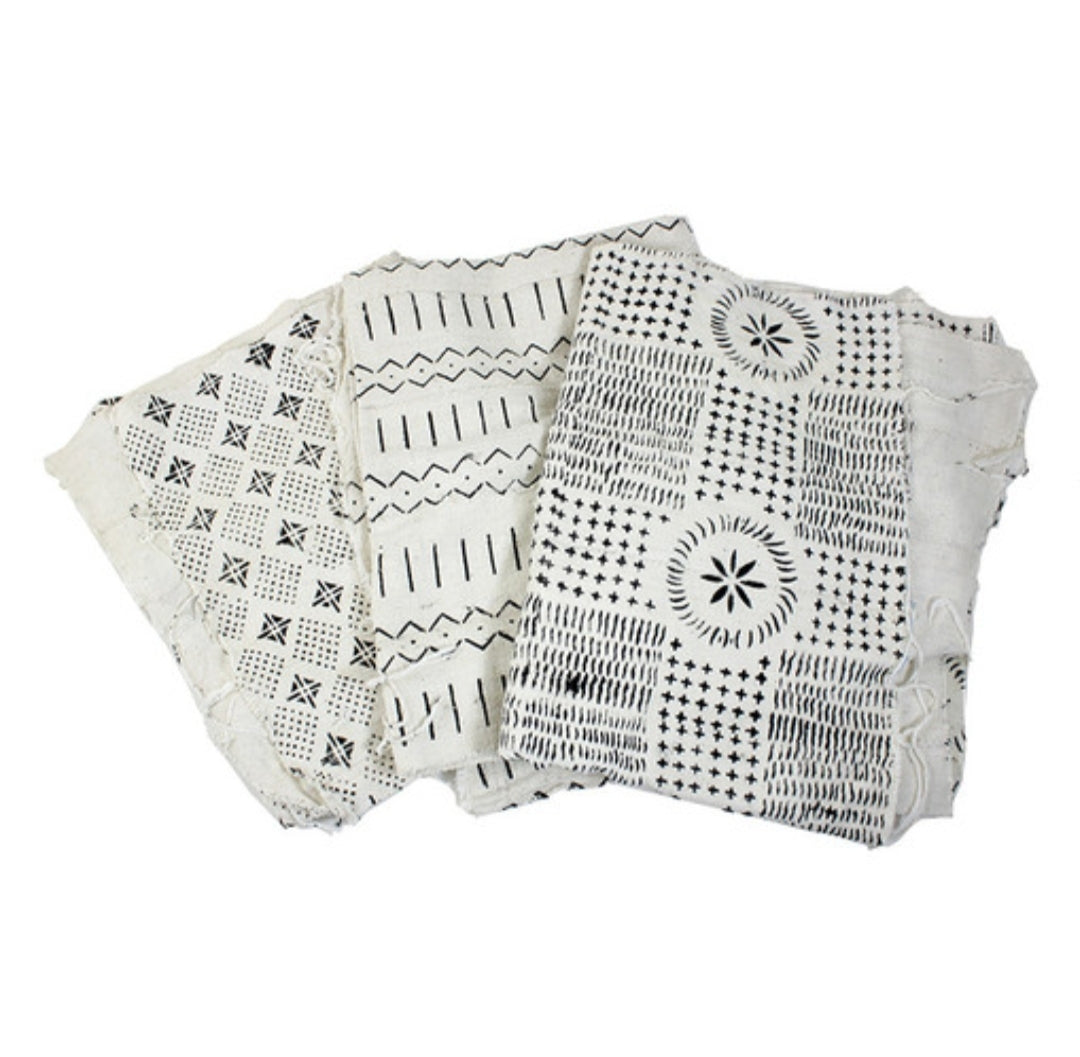 All mudcloth is individually hand spun, hand woven, and hand painted. Each piece is different. Photos shown here are representative of colors only. Plain white pieces can vary in shade from bright white to off white. There is no guarantee on the shade you will receive.
