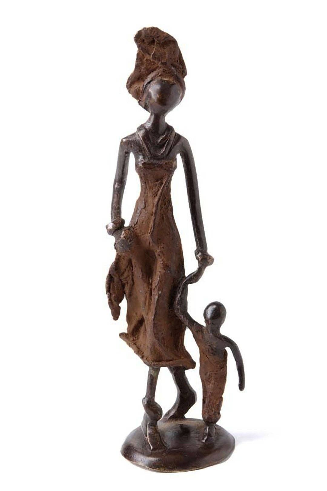 Talented metal workers in Burkina Faso handcraft this beautiful sculpture of a mother and child walking together using a lost wax casting method. A beautiful gift for mothers and grandmothers, each sculpture is completely one-of-a-kind.