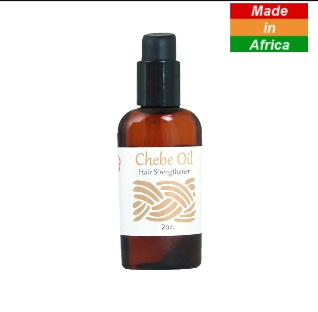 Chebe Oil Hair Strengthener 2 oz Hair oil made with 100% authentic Chebe powder from Chad, Africa. Chebe (pronounced shea bay) powder is a traditional hair growth remedy from Chad, Africa. It has been used for generations to increase hair growth and prevent breakage. All natural, and only available from plants in this remote part of Africa. M-P410 Chebe is the secret to very long hair in Chad. In Chad women’s hair often goes past their waist. For African women elsewhere, this length of hair is almost never seen. Moisturizes hair and prevents breakage. The Basara women in Chad are known to have very long hair. They cover their hair in a home made mixture that keeps their hair super moisturized and lubricated which is the reason given for why they say their hair never breaks; even from childhood. This is made with ingredients that are only found in Chad and Sudan. Unlike shea butter and other hair moisturizers, Chebe penetrates the hair shaft to prevent breakage like nothing else. Also de-tangles easily making hair easier to manage. Chebe oil can be used daily. Ingredients: Grape Seed oil, Black Castor oil, Olive oil, Argan oil, Jojoba oil, Blood Orange essential oil, Chebe Powder