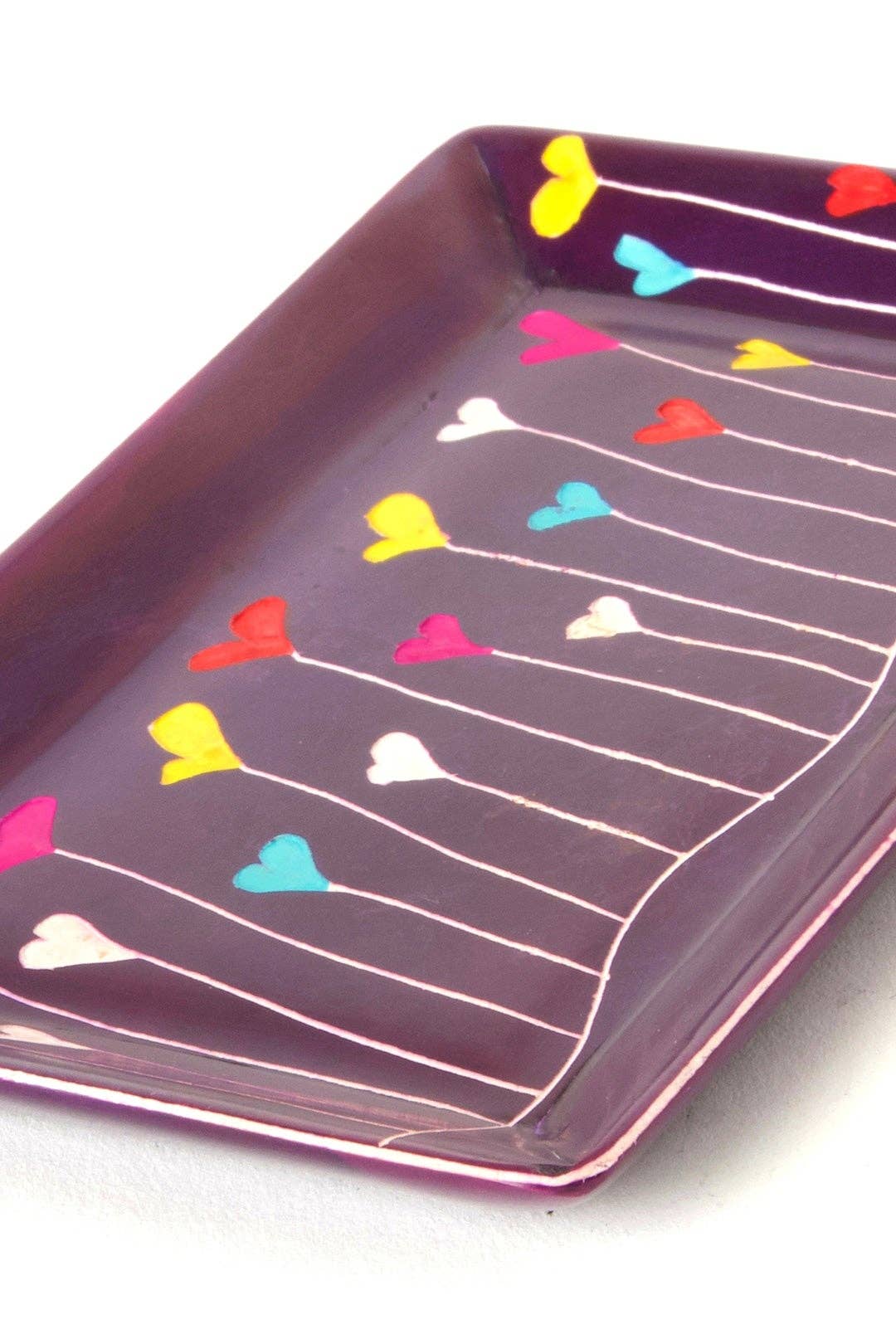 Kenyan artisans handcraft an uplifting decorative dish by carving soft soapstone and adding a fanciful hand painted heart flower design. Matching pieces are also available to bring a joyful touch of global art to the home.