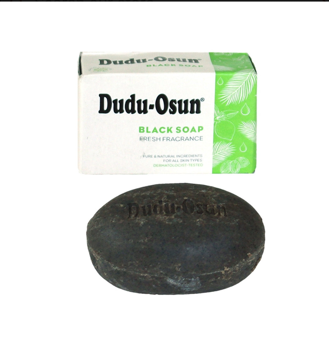 Dudu Osun Black Soap. Dudu Osun is made with Pure Natural Ingredients. Ingredients: Pure Honey, Shea Butter, Osun(Camwood), Palmkernel Oil. Cocoa Pod Ash, Palm Bunch Ash, Aloe Vera, Lime Juice, Water & Fragrance.