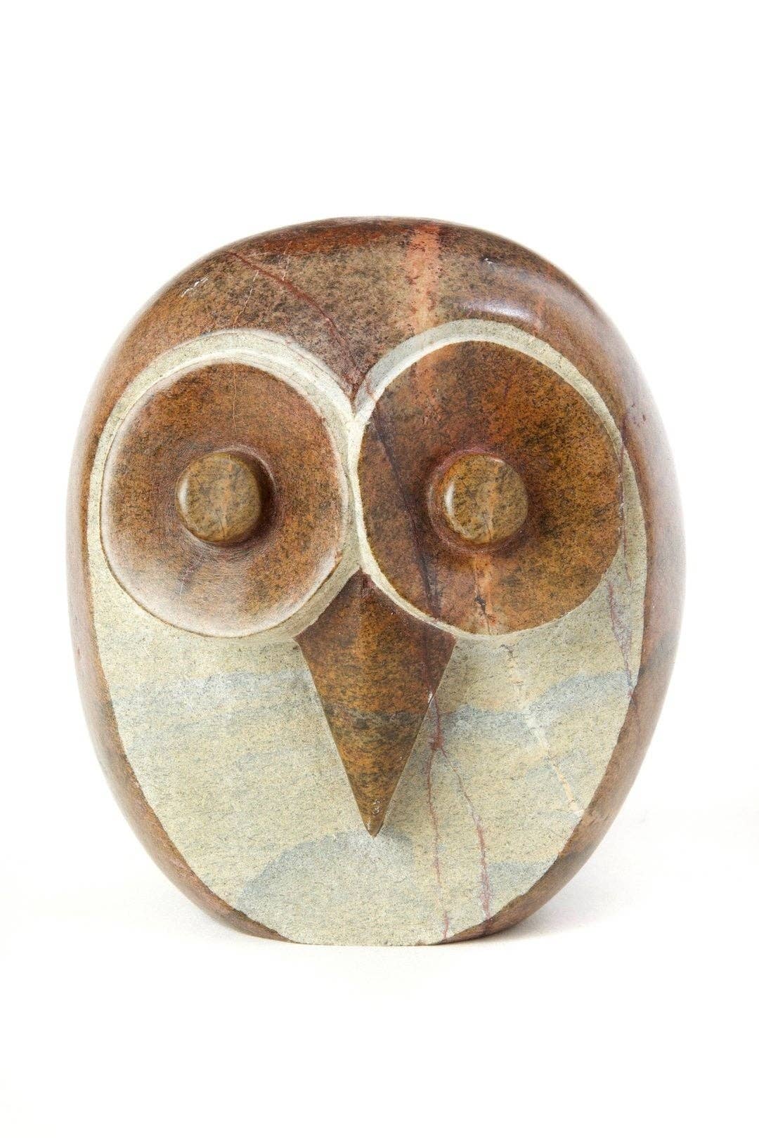Zimbabwean artisan Luke Jimu and his team sculpt serpentine stone into a sweet owl sculpture characterized by contrast between rough and polished stone. Because no stone is the same, every owl is unique.