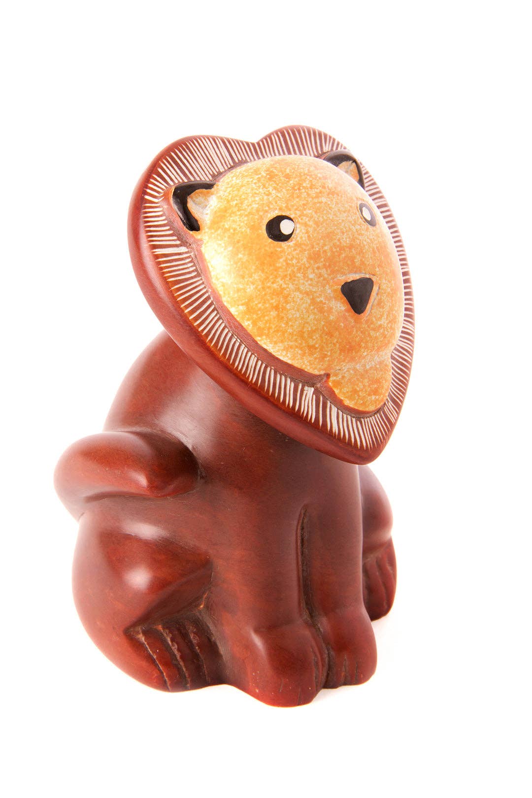 Kenyan artisans hand carve this lovable lion from soft soapstone, then hand dye with warm shades brown. The heart-shaped mane add some serious sweetness.