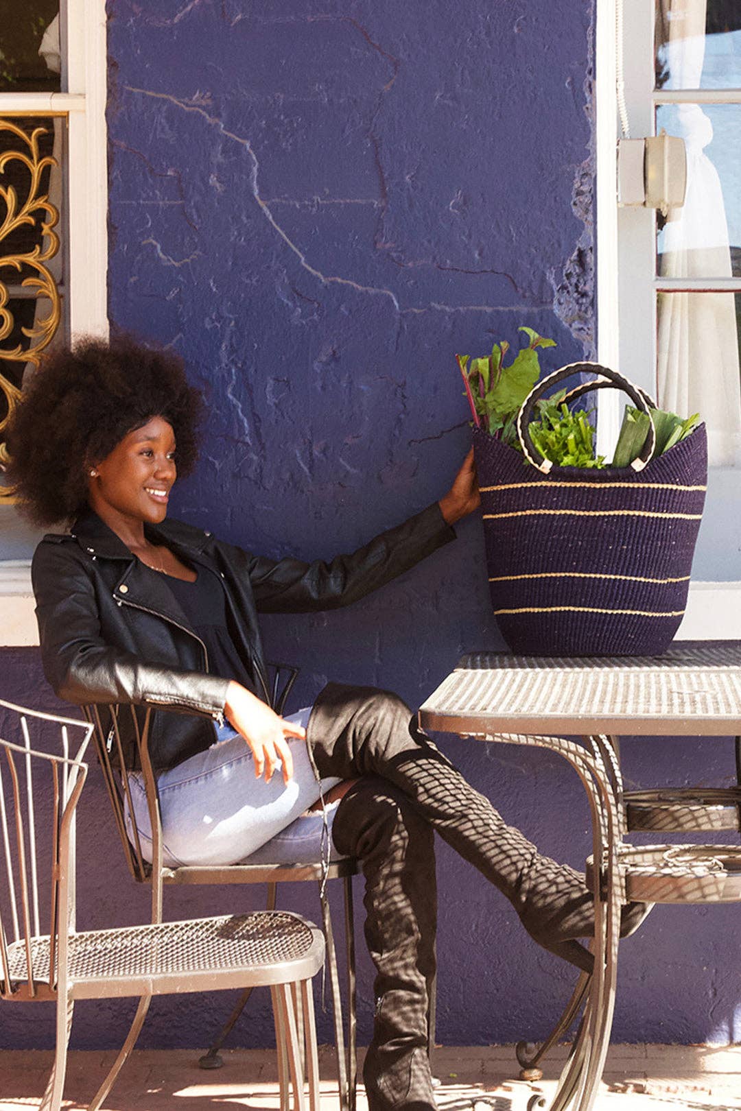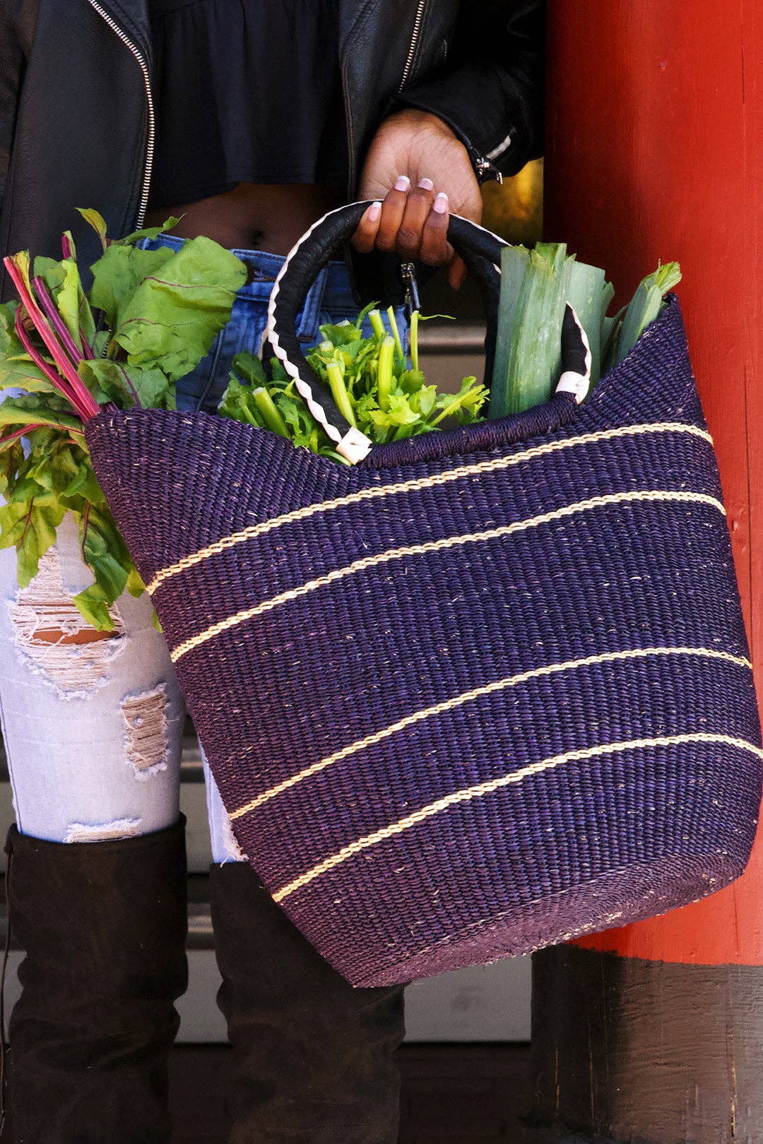 Talented weavers in Ghana handcraft this stylish and durable shopper from thick stalks of elephant grass. A perfect accessory from home to market to beach and beyond, the shopper has soft leather handles for added comfort.