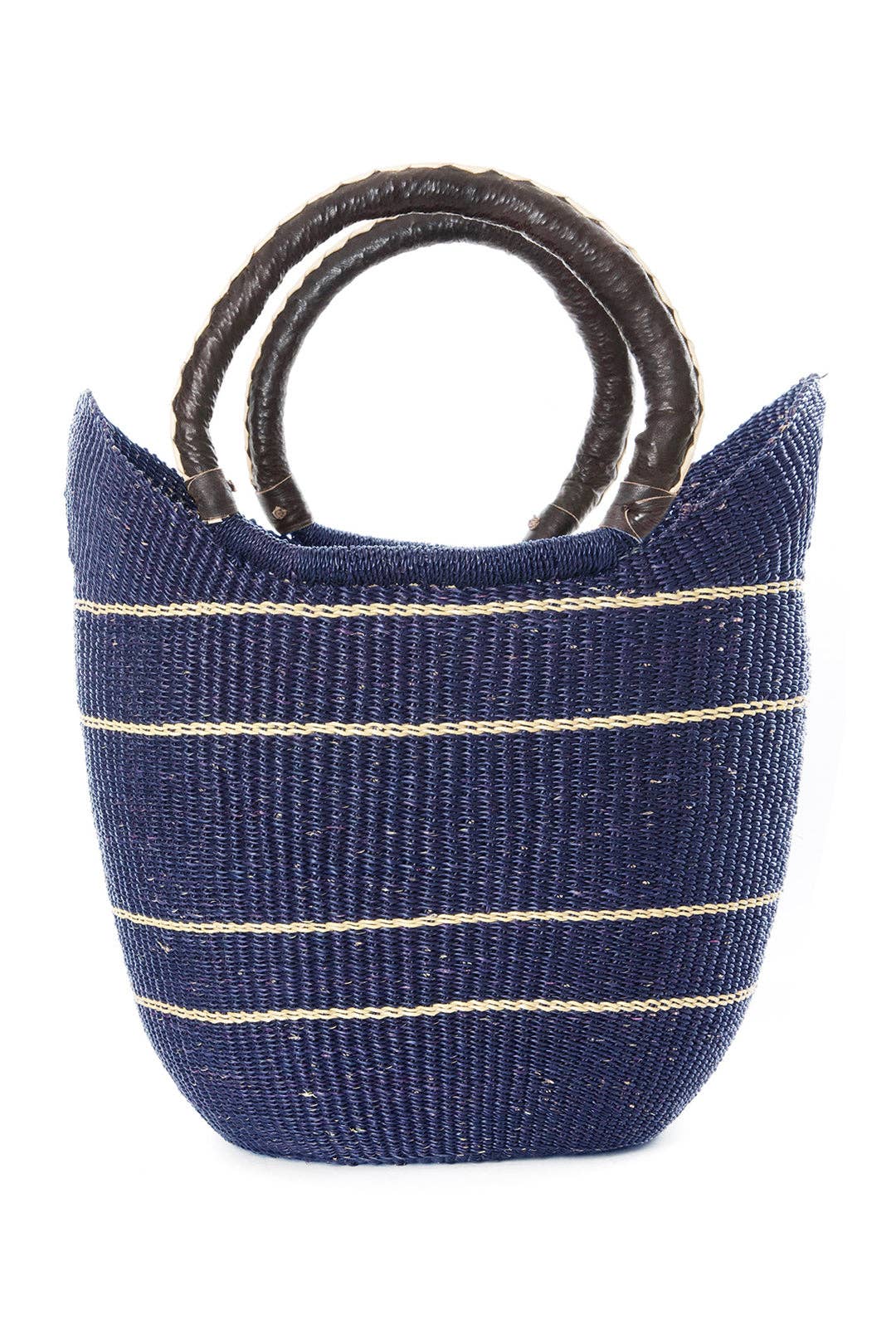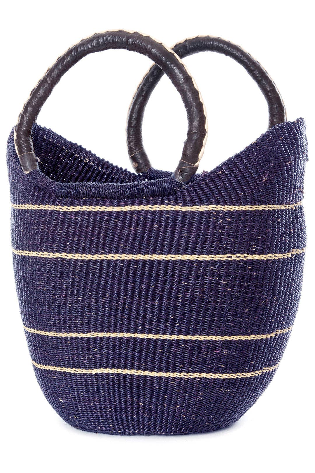Midnight Blue Pinstripe Bolga Shopper with Leather Handles