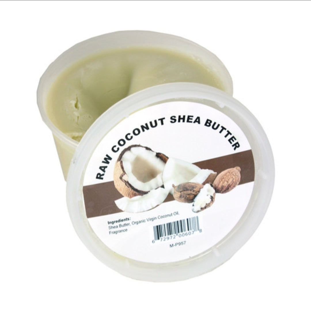 \nSoften, nourish and protect your skin with our Raw Coconut-Shea Butter. This powerful duo is not just for those seeking a natural product—it will work wonders on anyone's hair and skin. Coconut oil provides antioxidants that help to reduce inflammation and promote healthy wound healing. It protects against environmental stressors. It also reduces fine lines. And don’t forget the shea butter—packed with vitamins A & E, shea butter provides deep moisture for skin while also working as an anti-inflammatory agent. Protect yourself from tomorrow's harmful environmental pollutants while receiving beauty benefits at the same time with this Raw Coconut-Shea Butter.Ingredients: Shea Butter, Organic Virgin Coconut Oil, Fragrance. M-P956