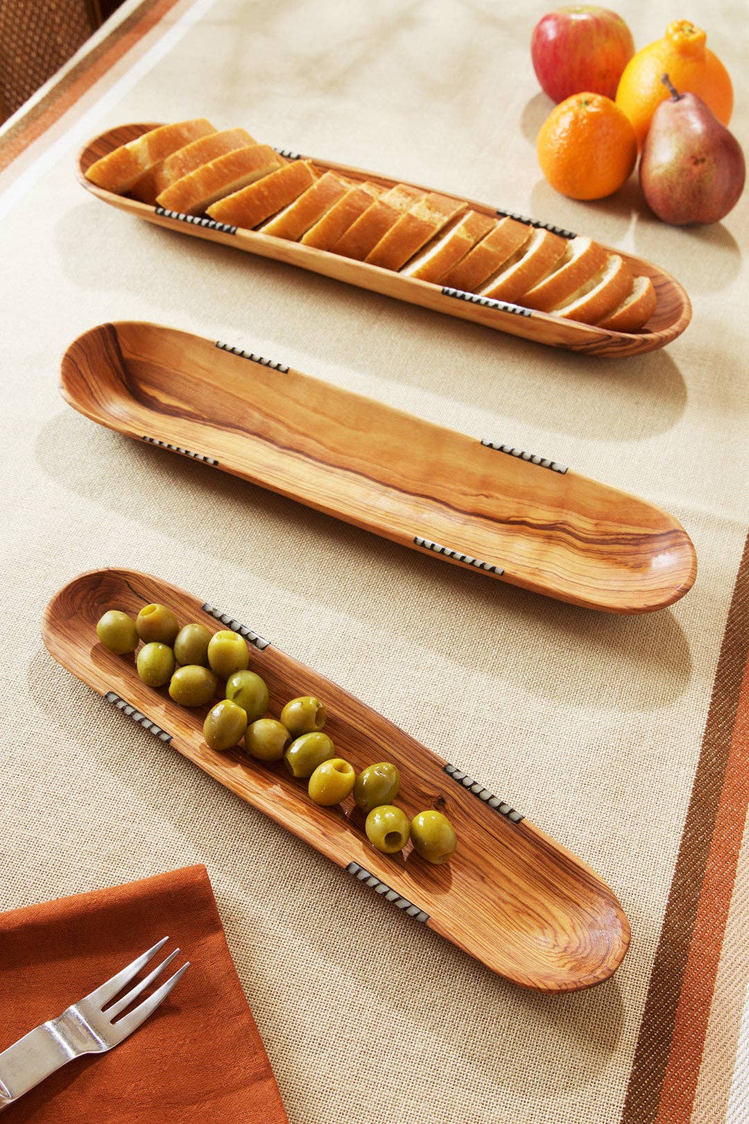 Set of 3 Wild Olive Wood Baguette Trays with Bone Inlay