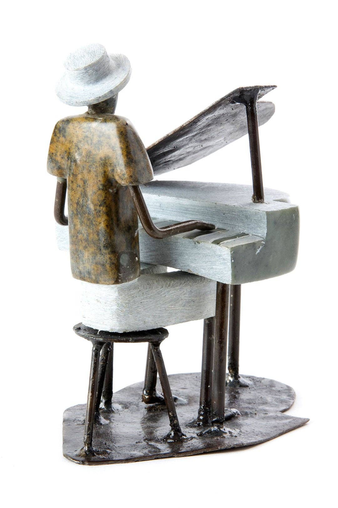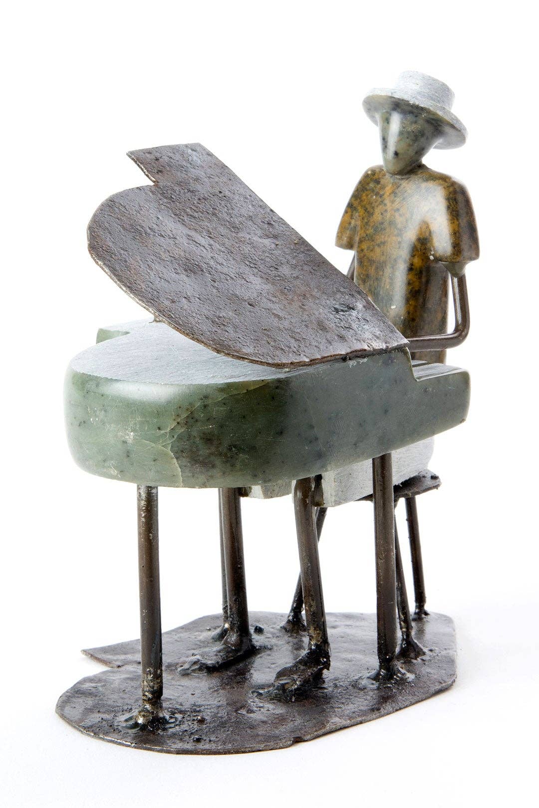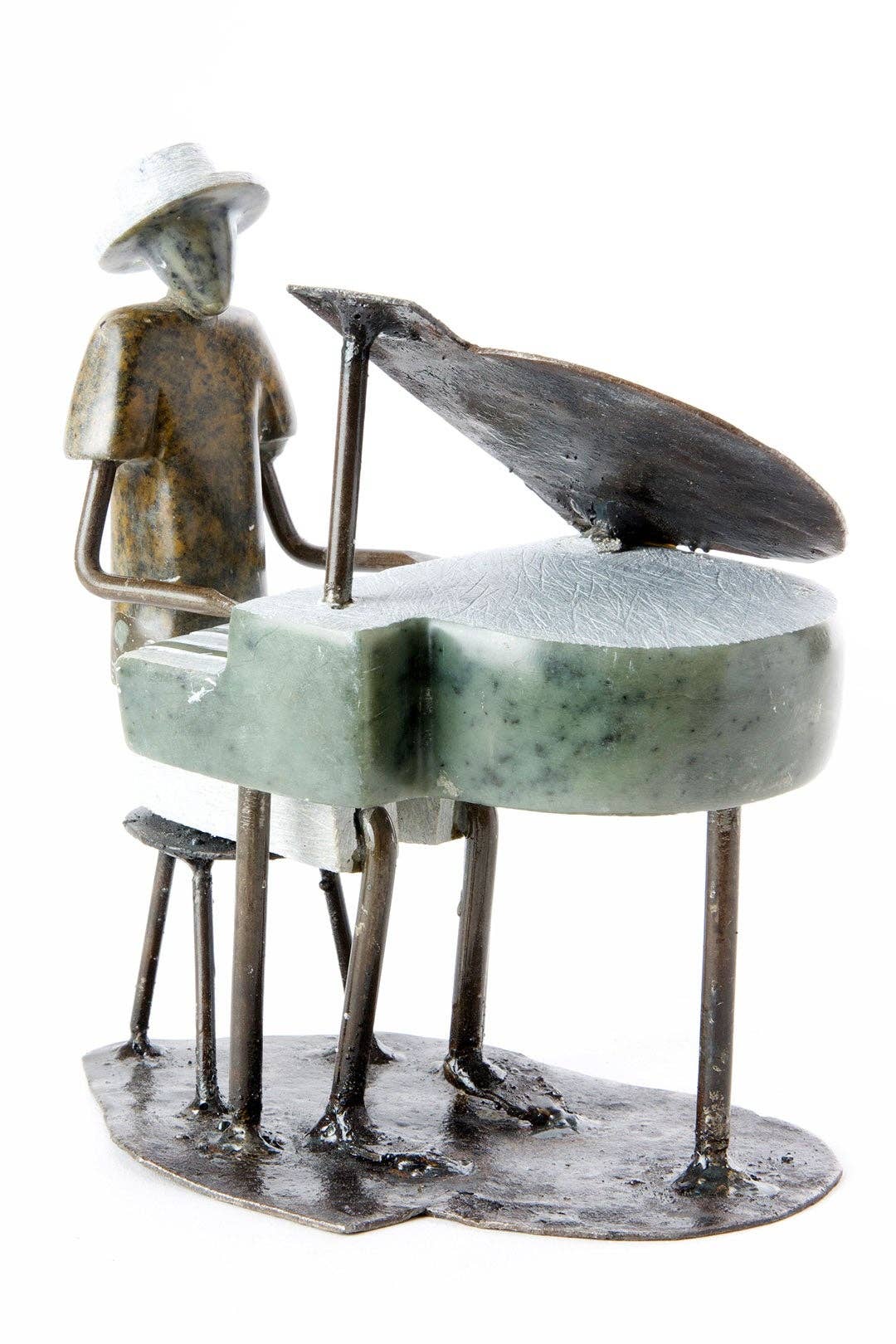 Zimbabwean artist Luke Jimu combines textured pale serpentine stone and recycled metal to create collectible modern art sculptures. Luke's gentleman pianist sculpture makes a thoughtful gift, and pairs perfectly with other members of the Festival Band collection.